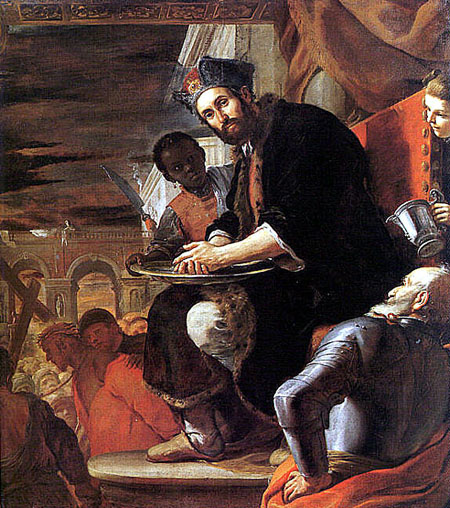 Later it was given by Pilate to Joseph of Arimathea as a memorial of Christ, and finally used by Joseph to collect the Holy Blood of Christ flowing from his five wounds.