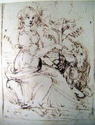 Leonardo da Vinci, Young woman seated in a landscape and pointing at a unicorn