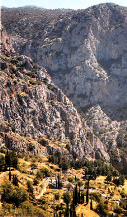 Located about one hundred miles northwest of Athens is the ancient site of the panhellenic sanctuary of Delphi.