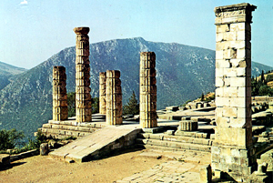 ![]() The Temple of Apollo The visible ruins belong to the last temple, dated to the 4th century BCE, which was peripteral, in Doric order. It was erected on the remains of an earlier temple, dated to the 6th century BCE. Inside was the adyton, the centre of the Delphic oracle and seat of Pythia. The monument was partly restored during 1938-1941.