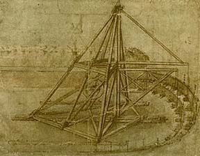![]() (image source) Leonardo, Machine for excavating canals (Codex Atlanticus, f. 4v) One large scale but never realized plan was for a navigable canal linking Florence to the sea. The scheme included cutting a series of giant steps with locks to enable ships to sail up into the hills. The water would be raised from one level to the next by a huge siphon. In Milan, he worked on a system of locks and paddle wheels for washing the streets. He also had plans for draining the unhealthy marshes of the Val di Chiana.