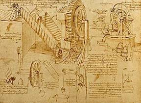 ![]() (image source) Leonardo, Machine for raising water (Codex Atlanticus, f. 26v) He also designed locks and canal systmes, and invented machines for excavating canals.